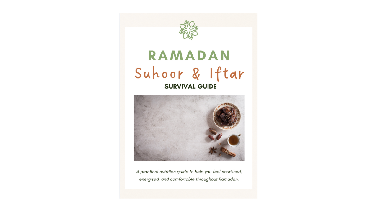 This guide was created to help you support your energy, digestion, and focus throughout Ramadan using simple, realistic nutrition strategies that actually fit into your life.